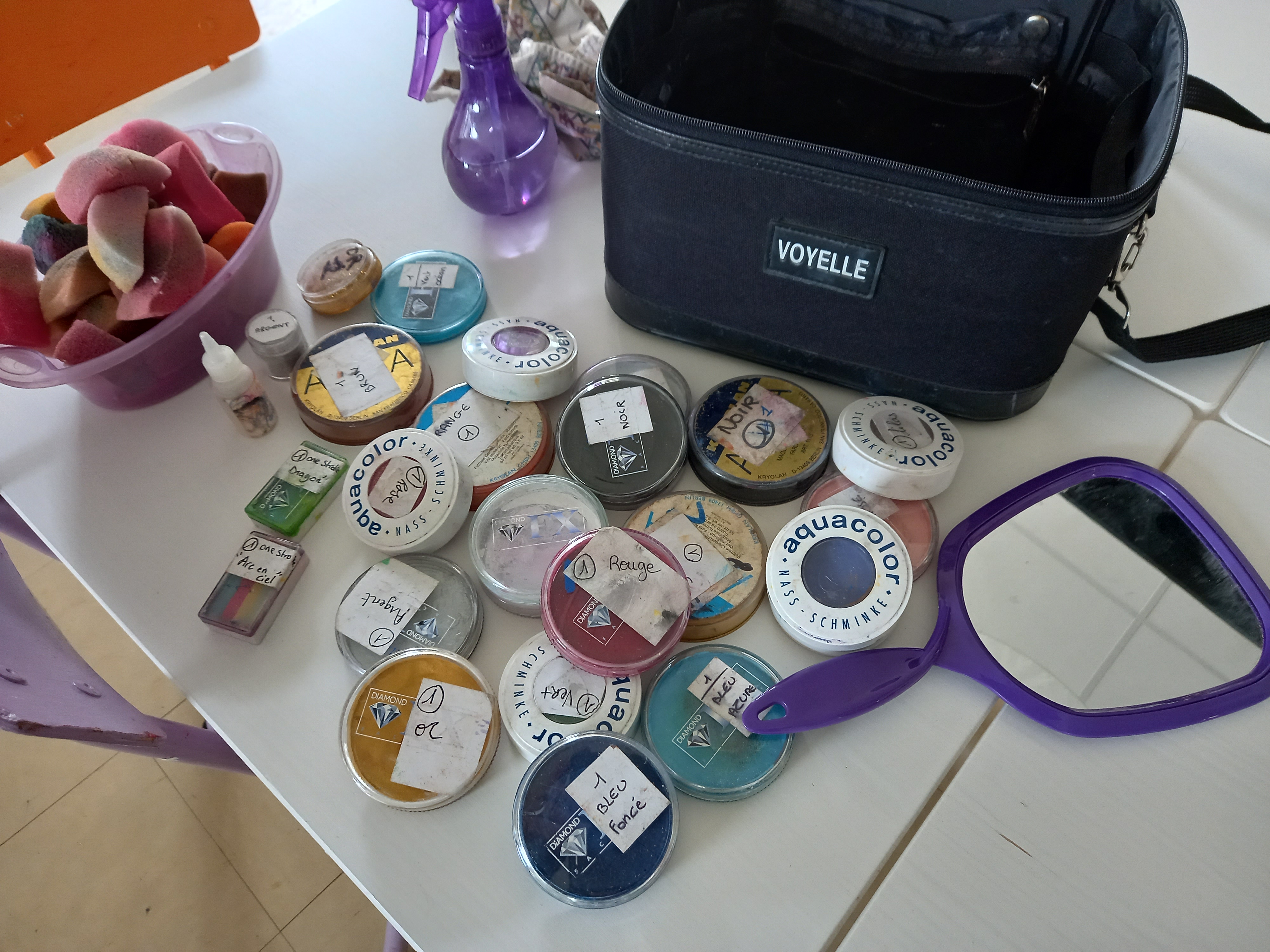 2 Mallettes de maquillage avec couleurs, pinceaux, éponges, miroir...