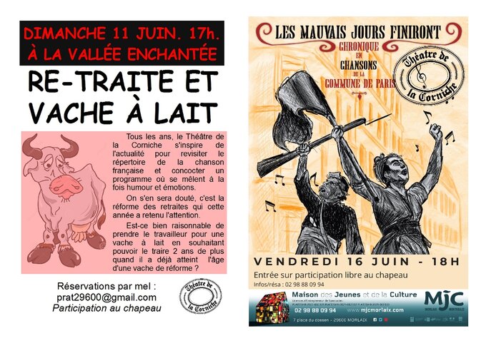 En attendant la reprise des "venelles de l’histoire" en Juillet et août ("La valse des privilèges", une reprise du spectacle « Les mauvais jours finiront, chroniques chantées sur la commune de Paris » aura lieu Vendredi 16 juin à la MJC.