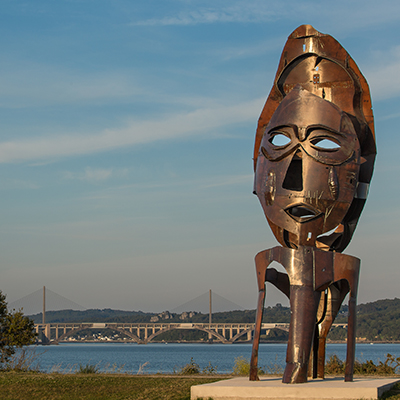 10 mètres de haut en acier, elle a trouvé son port d’attache et posait toute la force et l’énergie de ce long chemin semé d’obstacles et de grands bonheurs suivi photographiquement avec constance par Véronique Brod.