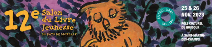 Le Salon du Livre Jeunesse du Pays de Morlaix, les 25 & 26 novembre, c’est un week-end festif et chaleureux autour du plaisir partagé du livre et de l’illustration, pour tous, tout-petits, ados ou adultes. Le thème 2023 est AU CŒUR DE LA NUIT, vous allez y chasser vos cauchemars et rêver tout éveillé…