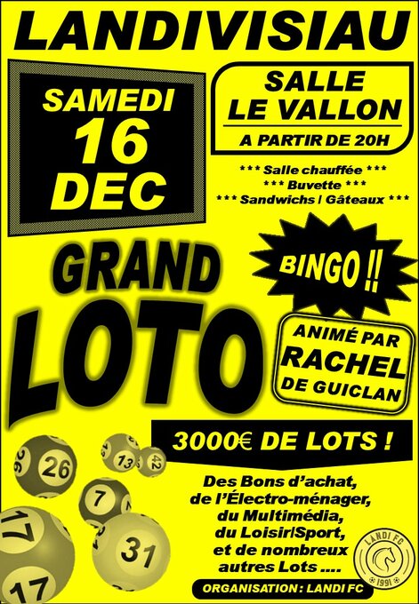 Début du Loto à 20h00 (ouverture des portes à 17h30).