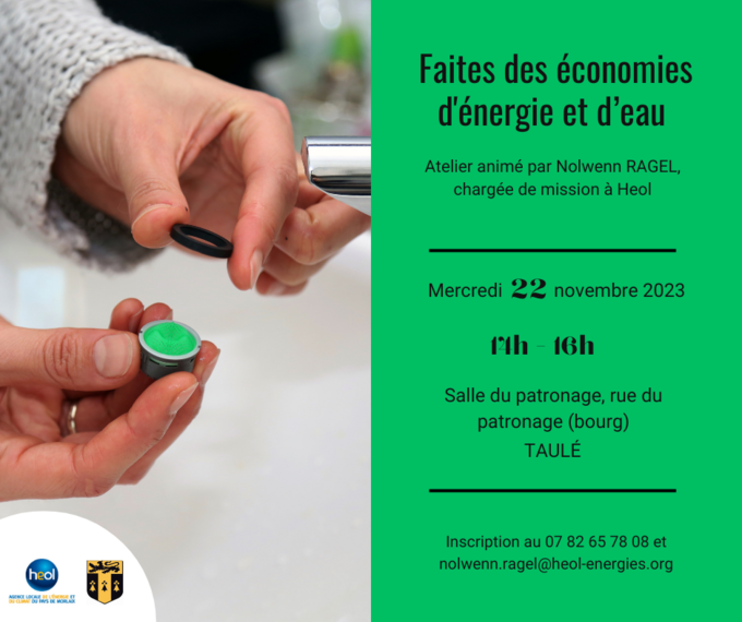 Dans le contexte actuel d’inflation et de crise énergétique, les économies d’énergie et d’eau sont plus que jamais d’actualité. Nolwenn Ragel, chargée de mission à l’agence Heol, distillera ses conseils pour mieux comprendre ses consommations et agir en conséquence : analyse des factures d’énergie et d’eau, éco-gestes du quotidien, petits équipements économes… les participants peuvent apporter leurs factures pour les décrypter ; ils repartiront avec de nombreuses astuces, qui feront du bien à la fois au portefeuille et à la planète !
