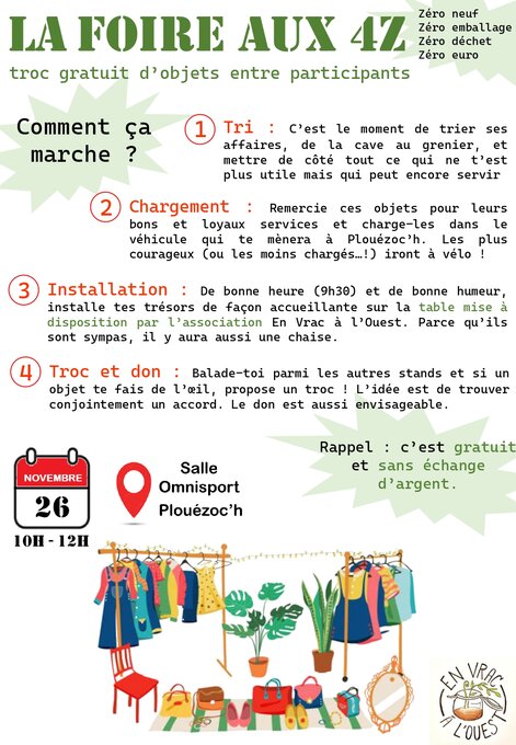 Les participants pourront échanger toutes sortes d’objets (vêtements, jeux, livres, plantes sur la base des 4 Z : « Zéro déchets, Zéro euro, Zéro neuf, Zéro emballage ».