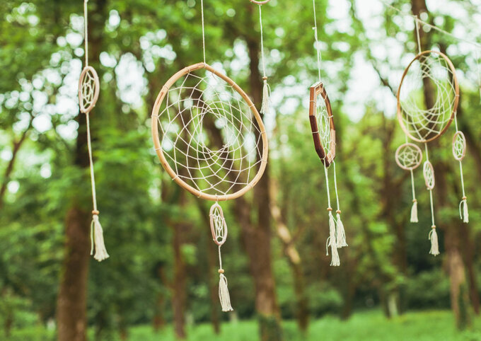 Lierre, fougère, saule, cônes de pin, glands et quelques bouts de ficelle ou de laine… Autant de matières premières pour réaliser votre attrape-rêve végétal !