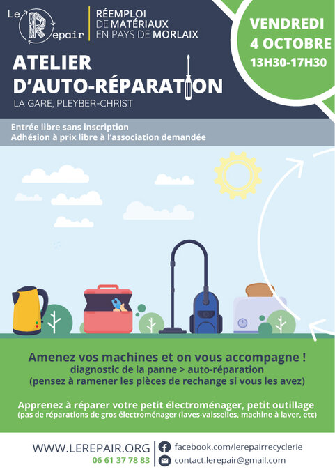 Amenez votre petit électroménager ou votre outillages électroportatifs durant la permanence de l’atelier d’auto-réparation au Repair.