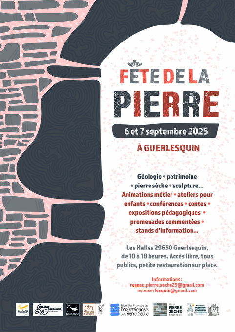 Associations (patrimoine, activités culturelles en lien avec la pierre) artisans, artistes, entreprises, sculpteurs, tailleurs de pierre, maçons restauration bâti ancien, muraillers, gestionnaires de carrières, nous serons tous réunis pour célébrer la pierre sous toutes ses formes ! Expositions , conférences, démonstrations, animations..... En partenariat avec l’association de sauvegarde du patrimoine de Guerlesquin