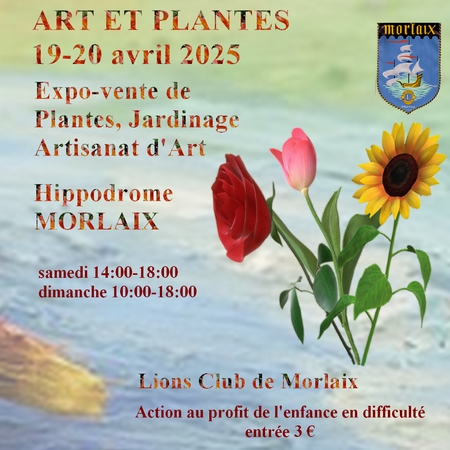 ART et PLANTES se déroulera (15ème édition) le 19 avril 2025 ( 14h-18h) et le 20 avril (10h-18h) organisé par le Lions Club de Morlaix au profit de l’enfance en difficulté du Pays de Morlaix.