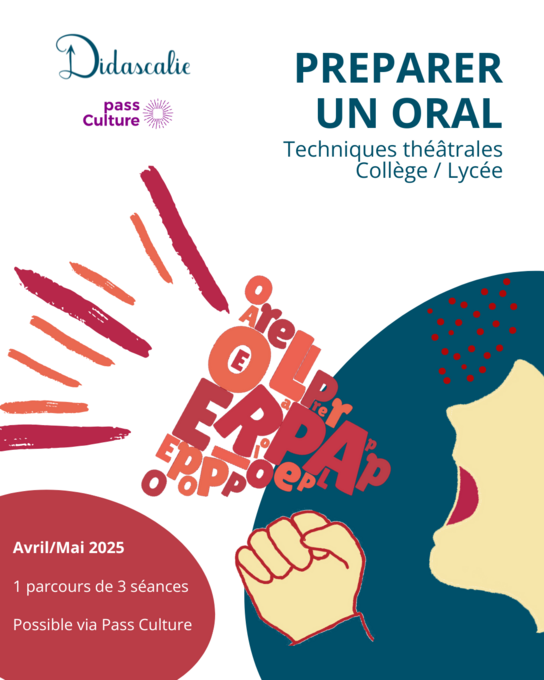 Didascalie propose un parcours de 3 mercredis pour travailler sa prise de parole. Nous travaillerons autour des techniques théâtrales de prise de parole à l’oral pour optimiser et améliorer son oral.