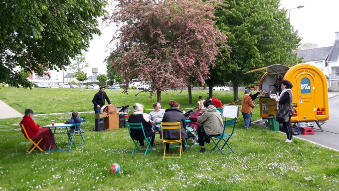 Carré d’As installe la Roulotte des possibles et une cuisine éphémère au quartier Bakounine pour réaliser une soupe avec les habitants et la partager.