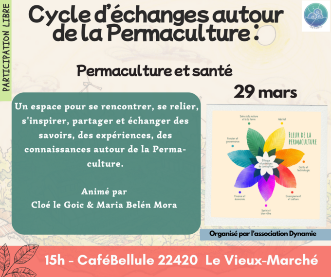 Un espace pour se rencontrer, se relier, s’inspirer, partager, papoter et échanger des savoirs, des expériences, des connaissances autour de la Perma-culture. Santé, économie alternative, biodiversité et bien d’autres sujets seront abordés pour nous amener collectivement à imaginer des présents/futurs possibles ! Bienvenue à tous.te.s ! Participation libre