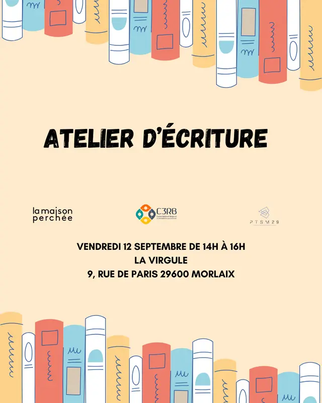 Rendez-vous le vendredi 5 septembre de 14h à 16h à La Virgule pour cet atelier d’écriture co-construit avec La Maison Perchée en Finistère, le C3RB et le PTSM29.