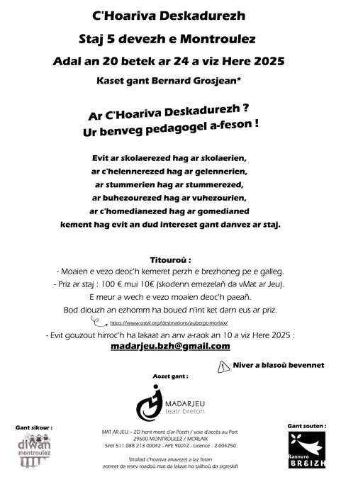 5 devezh staj war ar c’hoariva deskadurezh e Montroulez gant Bernard Grosjean