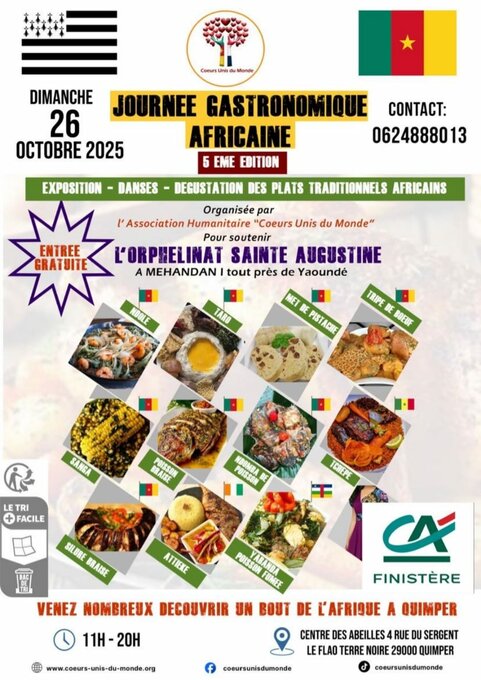 Joirnée spécialités africaines exposition, vente, degustation des plats traditionnels africains entrée gratuite.