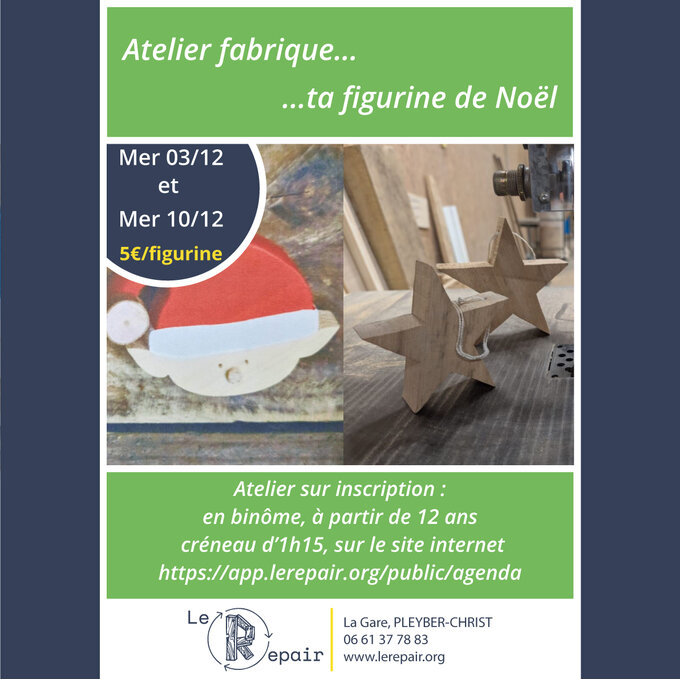 Durant 1h15 découvre, l’utilisation de la scie à chantourner et découpe ta figurine de Noël, accompagné par un bénévole permanent de l’atelier bois.