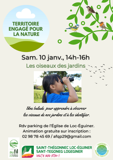Une balade dans le bourg de Loc-Éguiner pour observer les oiseaux de nos jardins et apprendre à les reconnaître.
