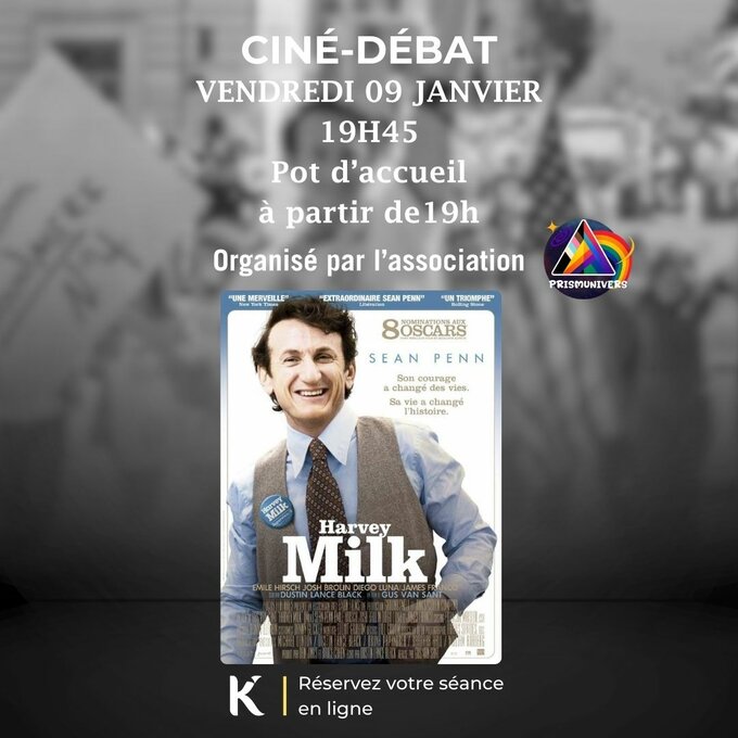 19h45 Projection du film Harvey Milk, suivi d’un débat ouvert.
