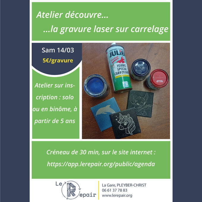 Le samedi 14 mars, viens découvrir ce procédé avec Julien de Art Breizh 29, professionnel de la gravure laser !