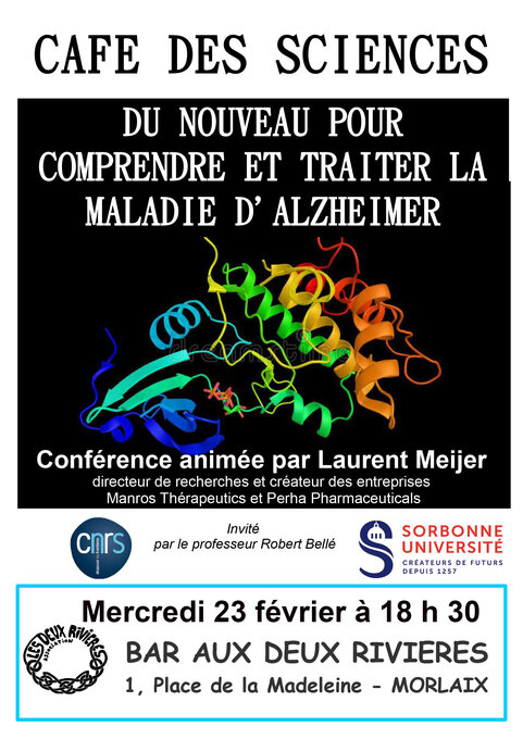 Au cours de ce 96ème café des sciences Dr Laurent Meijer, expliquera en termes accessibles au public sa stratégie scientifique pour comprendre et traiter la maladie d’Alzheimer et la trisomie 21. Il évoquera les résultats très prometteurs de son équipe grâce à la découverte d’une molécule, dérivée d’une éponge marine, au nom « barbare » de Leucettinib-21, un candidat médicament pour traiter les déficits cognitifs associés à la trisomie21et à la maladie d’Alzheimer. L’exposé sera adapté pour un très large public.