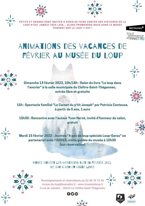 Dimanche 13 février 2022, 10h/18h : Salon du livre « Le loup dans l’encrier » à la salle municipale du Cloître-Saint-Thégonnec, entrée libre et gratuite