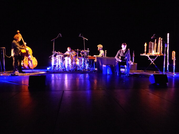 et le groupe ARZAN ( Kevin Le Saint : Flûtes et claviers Théo Pichard : Claviers et textes Ivan Le Saint : Contrebasse Eric Ganter : Batterie Pierre Yves Le Berre ) avec ses compositions inspirées, réunies en un spectacle sur le thème du souffle, où le chant des instruments à vent et des langues anciennes du monde prend vie sur une assise de percussions, de contrebasse et de claviers