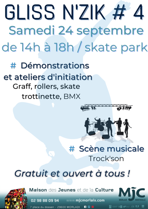 Samedi 24 septembre, la Maison des Jeunes et de la Culture organise une après-midi autour des sports et pratiques urbaines avec une nouvelle édition de Gliss N’Zik.