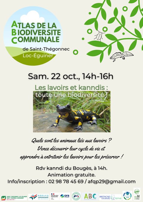 Quels sont les animaux liés aux lavoirs et autres points d’eau ? Venez découvrir leur cycle de vie et apprendre à entretenir les lavoirs pour les préserver. Une animation gratuite proposée dans le cadre de l’atlas de la biodiversité communale. Inscription recommandée au 02 98 78 45 69.