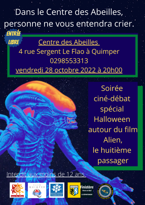Venez trembler autour du film Alien, le huitième passager de Ridley Scott le vendredi 28 octobre 2022 à 20h00 au Centre des Abeilles