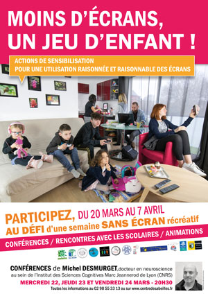 Il s’agit de se mettre au défi de moins utiliser les écrans… d’oublier et d’éteindre la télévision, les tablettes, les smartphones, les consoles de jeux, les ordinateurs qui envahissent notre vie tous les jours.