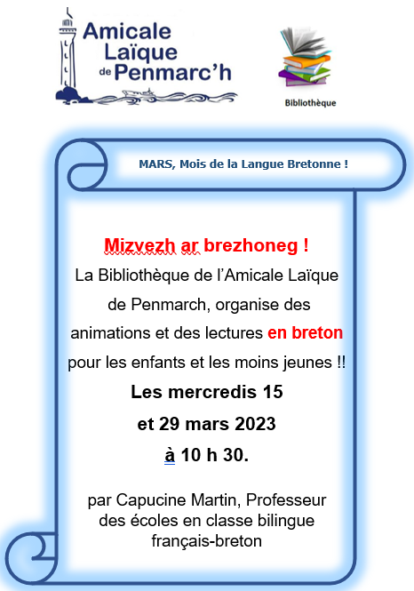 | Localisation | Bibliothèque de l’Amicale Laïque de Penmarc’h 159 rue des écoles - 29760 Penmarc’h |
