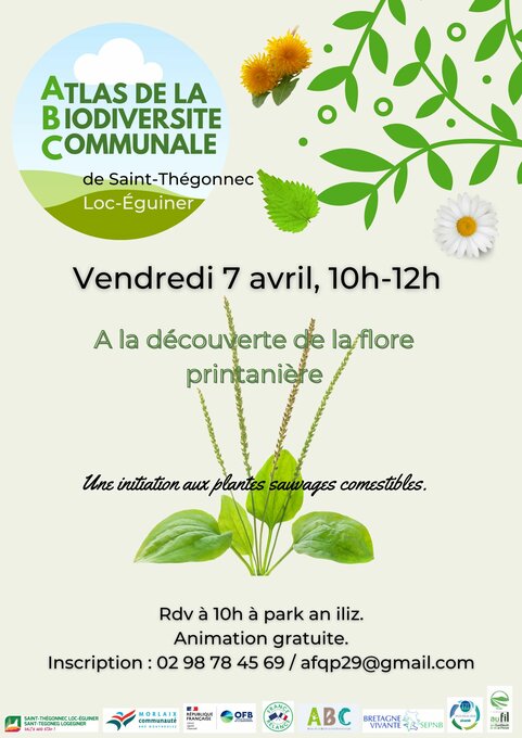 Une initiation aux plantes comestibles sauvages lors d’une balade dans le bourg de Saint-Thégonnec. Animation proposée dans le cadre de l’atlas de la biodiversité communale de Saint-Thégonnec. Rdv à Park an Ilis à 10h. Inscription obligatoire.